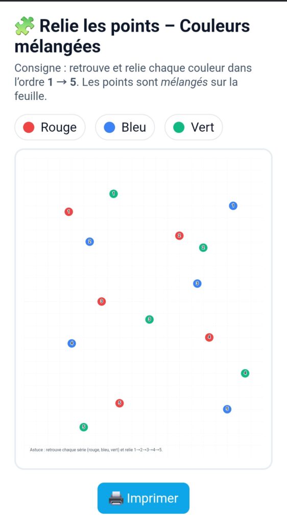Un cahier d’activités à imprimer (3–6 ans) : coloriages, logique, écriture, origamis.